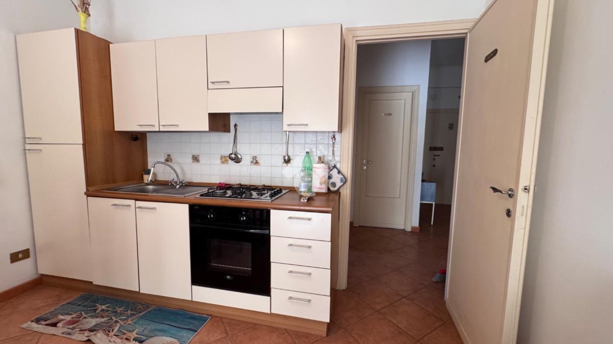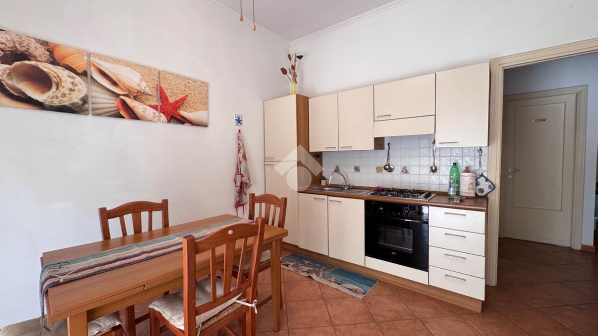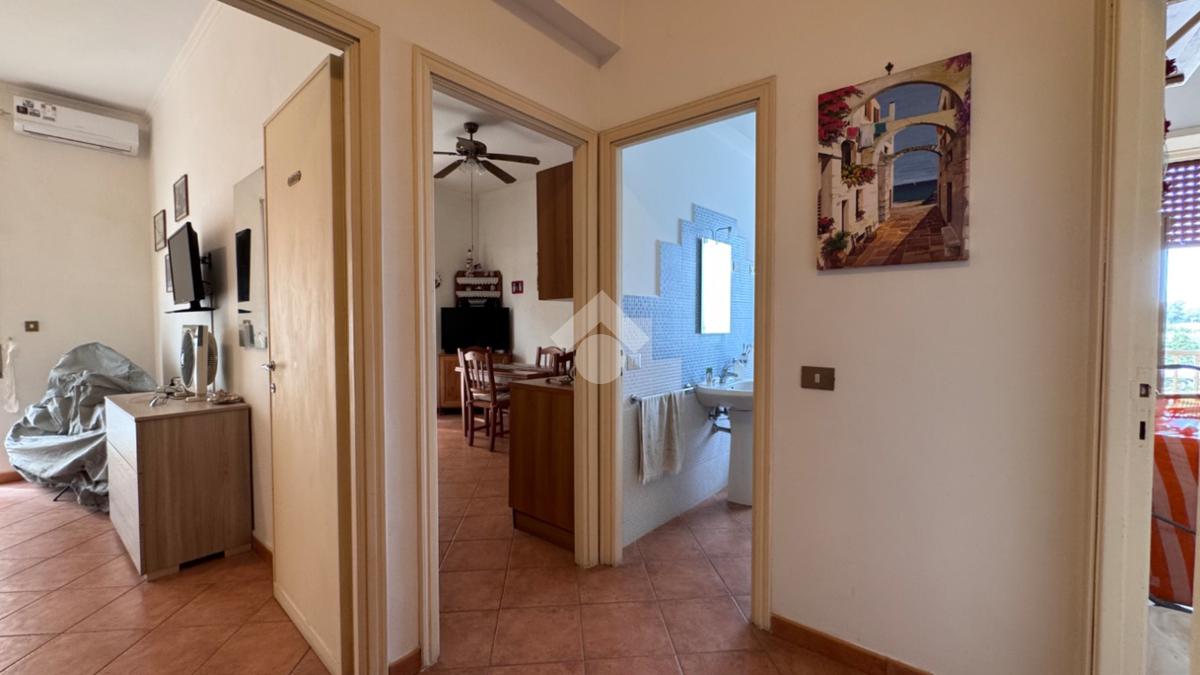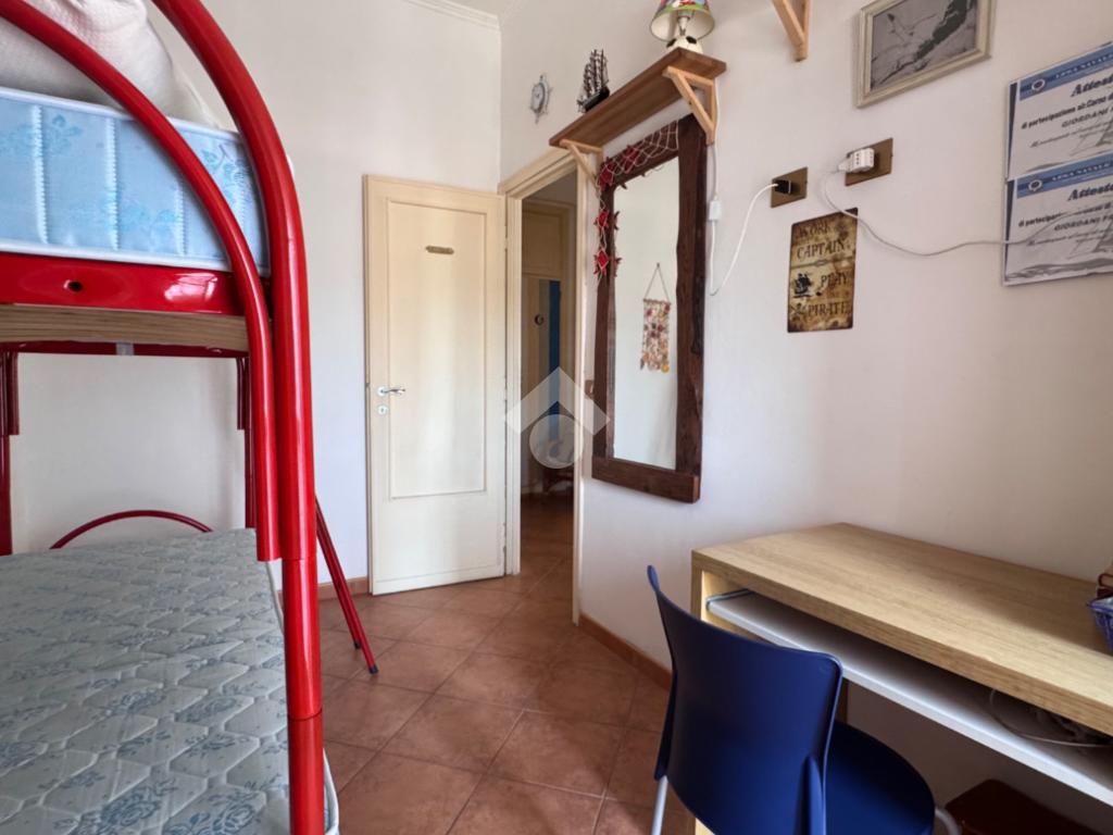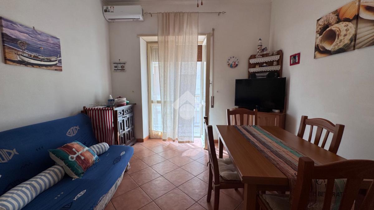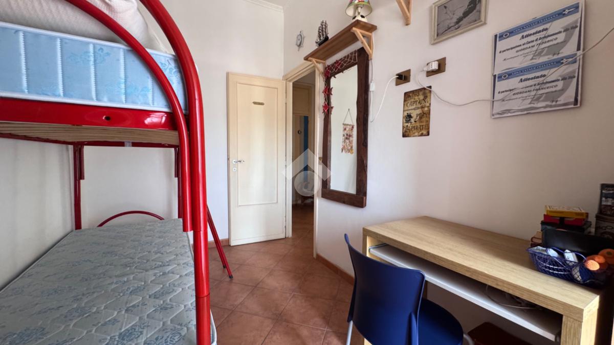 L’immobile è composto da un comodo ingresso, soggiorno con angolo cottura e balcone con vista mare laterale, camera matrimoniale con porta finestra sul balcone, cameretta con balconcino e bagno finestrato dotato di box doccia.