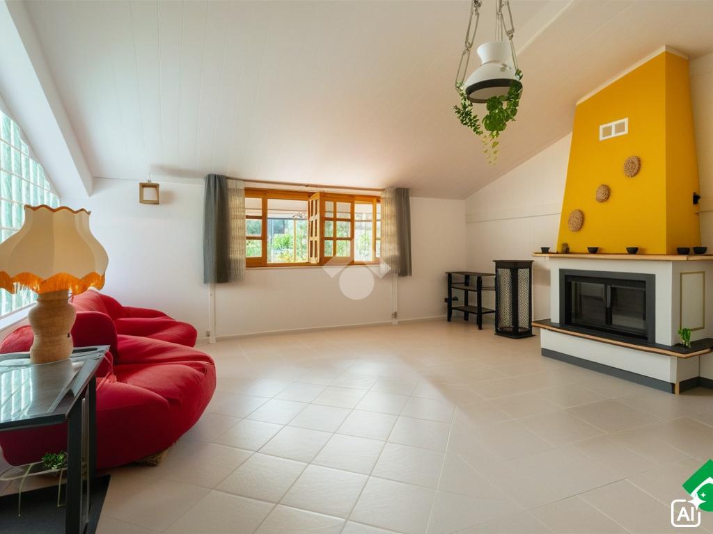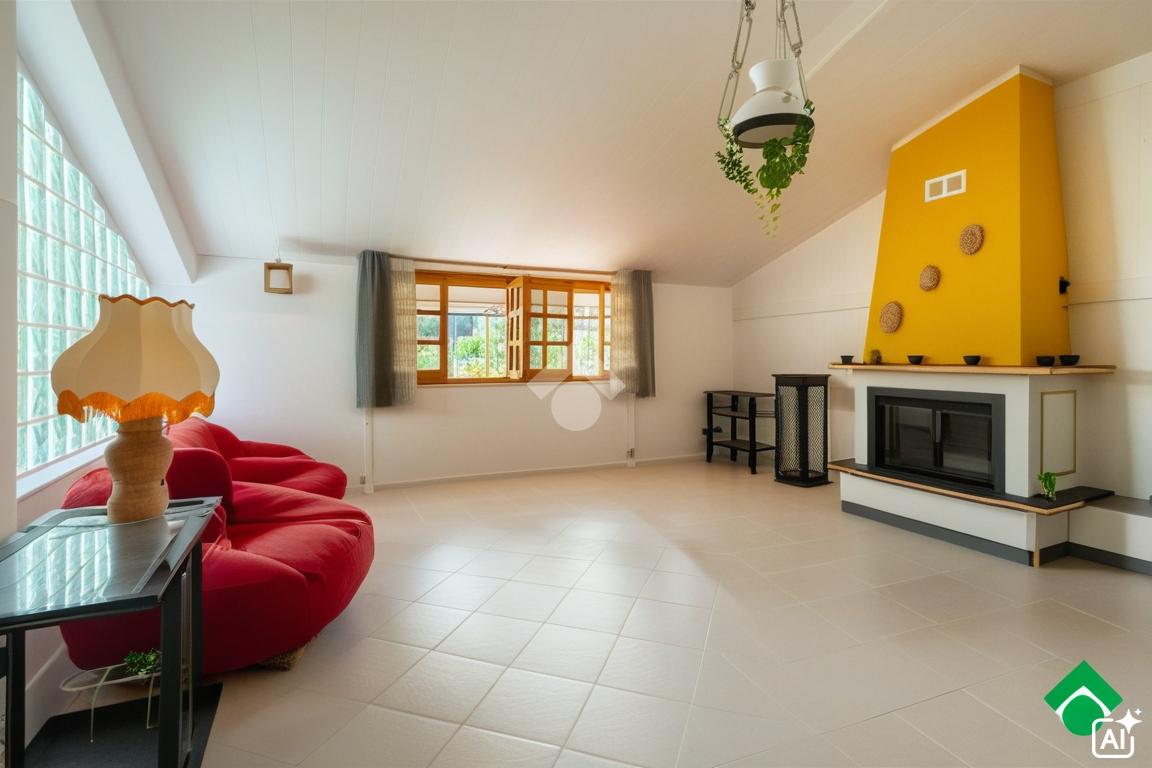 All’interno, gli spazi sono ben distribuiti e luminosi. La zona giorno si apre su una sala spaziosa, arricchita da un camino in muratura, perfetto per creare un’atmosfera calda e accogliente nelle serate invernali. La cucina è abitabile, con spazio sufficiente per un grande tavolo da pranzo.