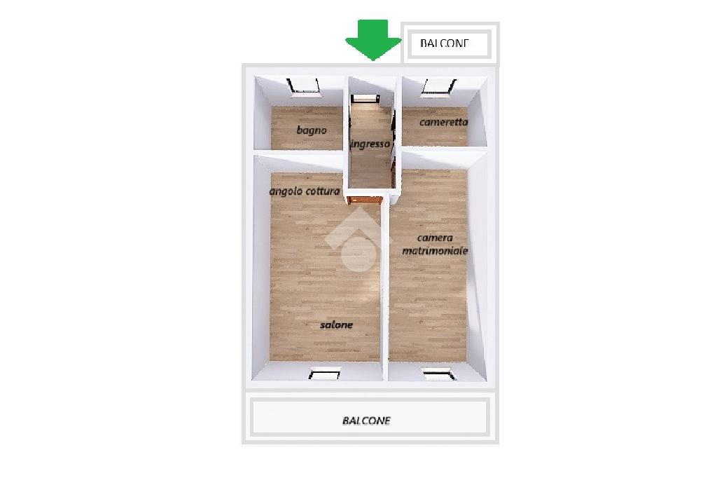 La disposizione interna è quella tipica di un appartamento di queste dimensioni, con gli spazi distribuiti in modo funzionale. La camera matrimoniale offre spazio sufficiente per un letto matrimoniale e un armadio. La cameretta può essere utilizzata come camera per bambini o come studio, a seconda delle esigenze. Il bagno è dotato di una comoda esposizione e finestra, restando ben arieggiato.