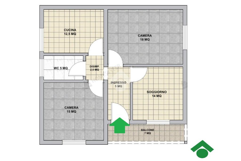 Varcata la porta, ci accoglie un ingresso che funge da disimpegno e distribuisce in modo funzionale tutti gli ambienti della casa. Il salotto, luminoso e ben proporzionato, gode dell’accesso diretto al balcone tramite porta finestra. La cucina è abitabile e separata, ideale per chi ama vivere gli spazi in modo pratico e conviviale. La zona notte è composta da due ampie camere da letto matrimoniali, mentre il bagno, finestrato, è dotato di vasca.