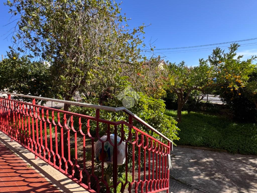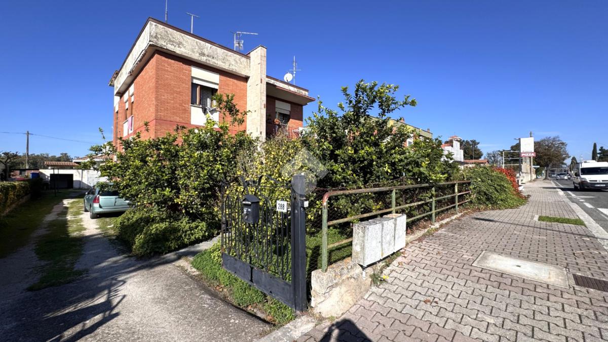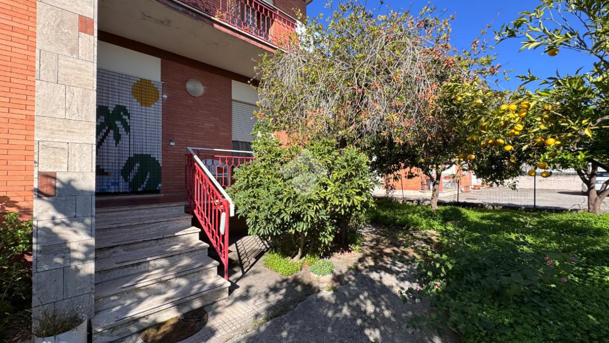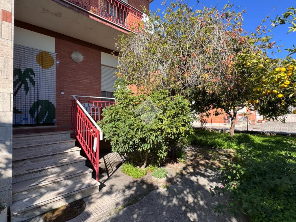 L’immobile si trova al piano terra rialzato di una palazzina sviluppata su due livelli, edificata nel 1966 e composta da sole due unità abitative. Superato il cancello carrabile, si accede a una ampia corte condominiale di circa 900 mq, uno spazio esterno che dona respiro e tranquillità al contesto. Salendo pochi gradini si raggiunge il balcone che conduce all’ingresso principale dell’abitazione.