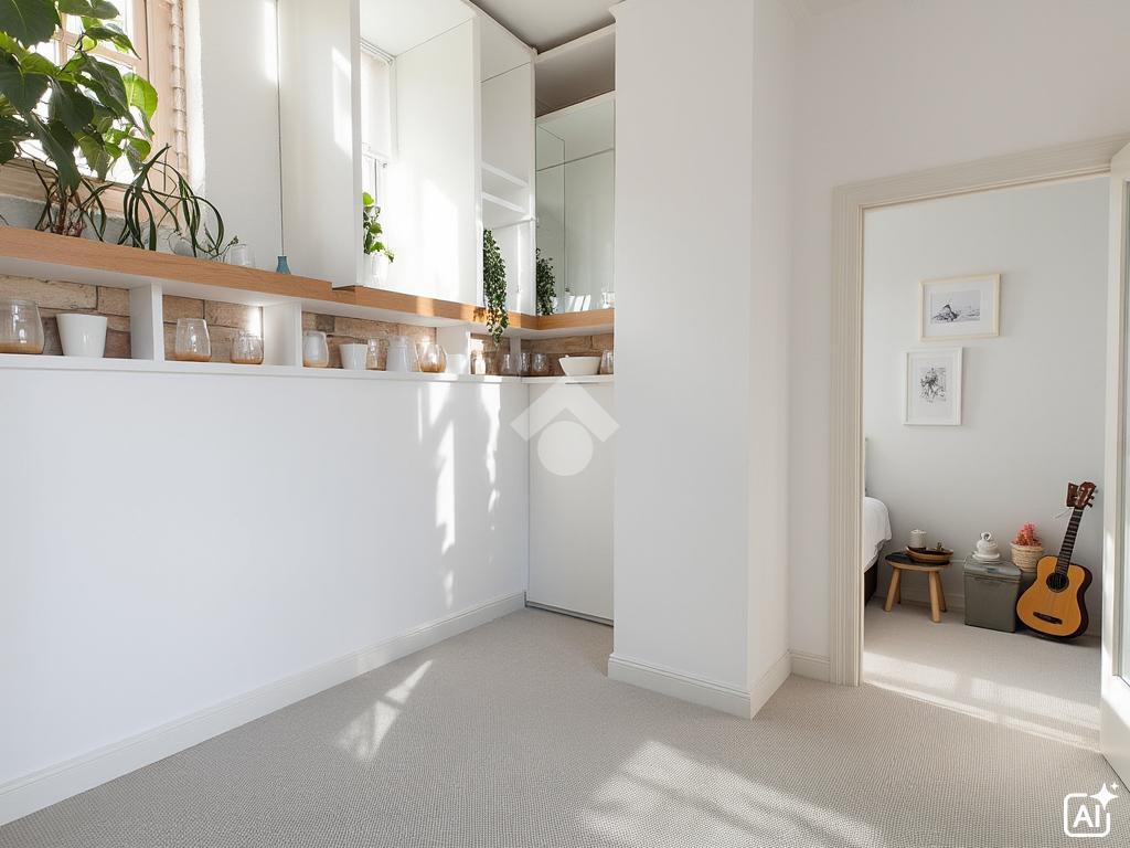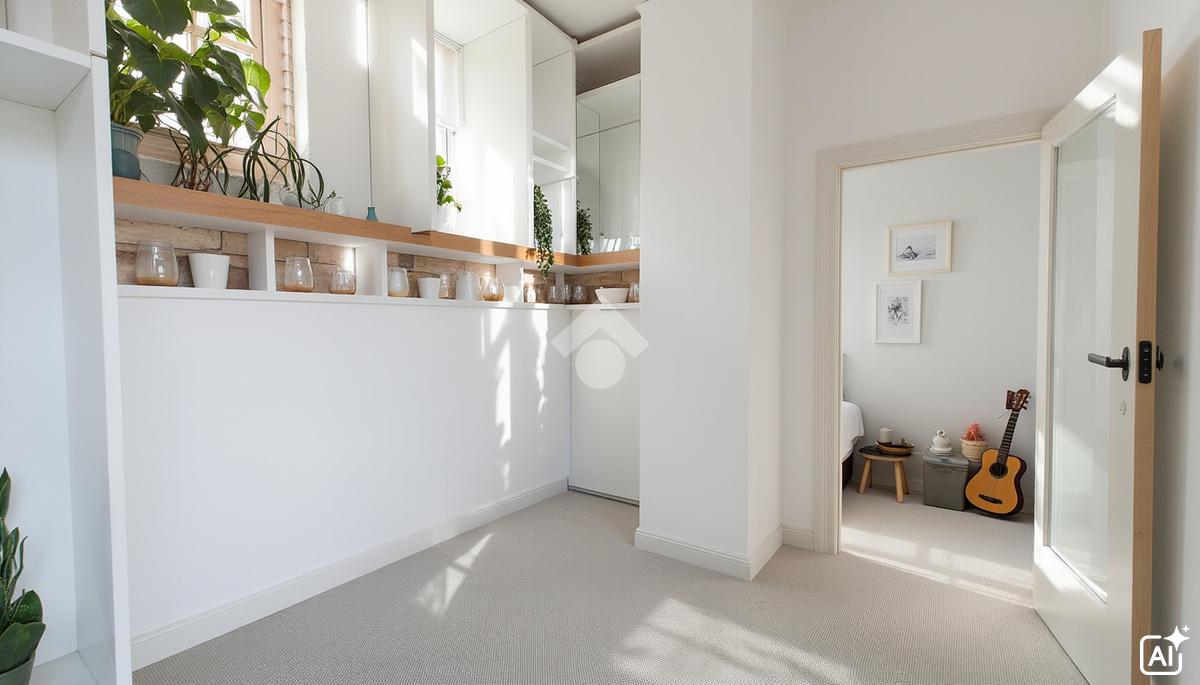 All’interno, un disimpegno centrale organizza gli ambienti: da un lato la sala da pranzo con angolo cottura, luogo ideale per la quotidianità; dall’altro il salotto, spazio raccolto e luminoso, che introduce alla zona notte. Qui troviamo una camera matrimoniale, una cameretta e un bagno finestrato, pensati per garantire comfort e funzionalità.