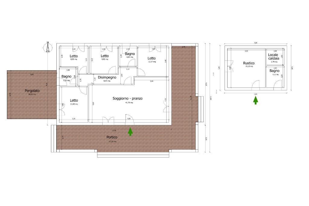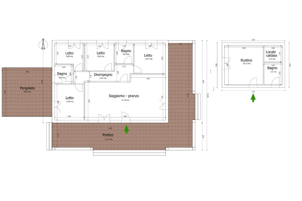 Elemento distintivo della proprietà è lo splendido portico di circa 60 mq che circonda la zona giorno, uno spazio coperto ideale per pranzi e cene all’aperto, area relax o zona living esterna da vivere durante gran parte dell’anno grazie al clima mite della zona. Completa la parte esterna un portico laterale, che valorizza ulteriormente l’architettura della villa e offre ulteriore spazio riparato, funzionale e versatile.