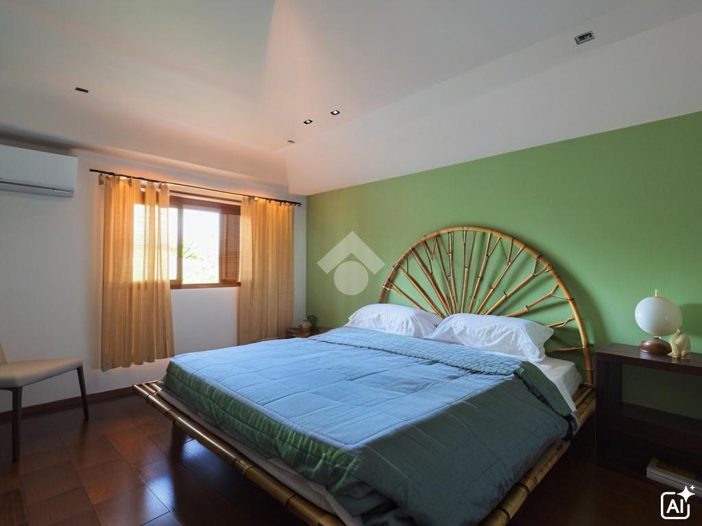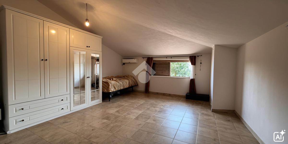 Salendo le scale, si raggiunge un disimpegno che funge da snodo centrale per il piano superiore, collegando le due camere mansardate con il bagno. Queste camere, con le loro linee inclinate e la sensazione di accoglienza, offrono un rifugio tranquillo e privato.