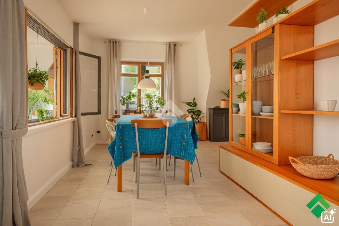 L'abitazione, costruita nei primi anni '80, sorge su un ampio lotto di circa 700 mq ed è circondata da un giardino privato che abbraccia la casa su tre lati, garantendo spazi verdi e un'atmosfera riservata.