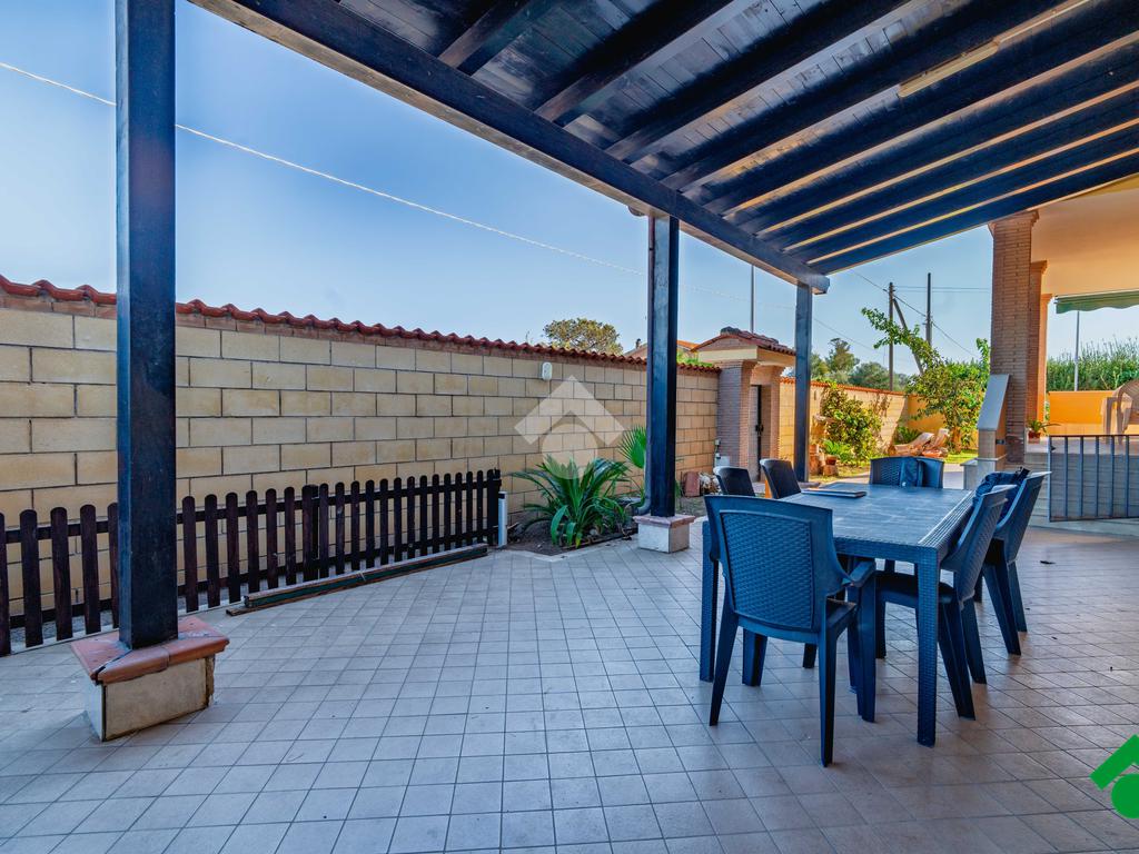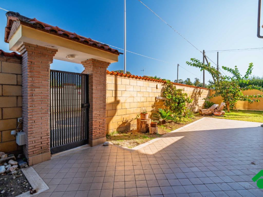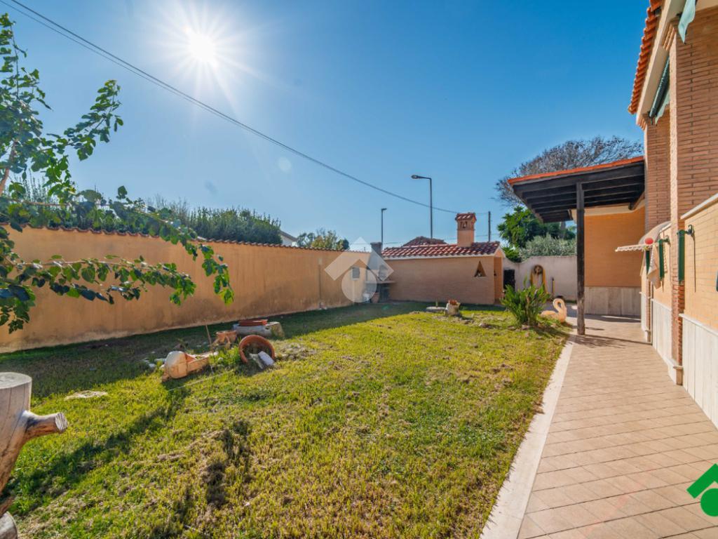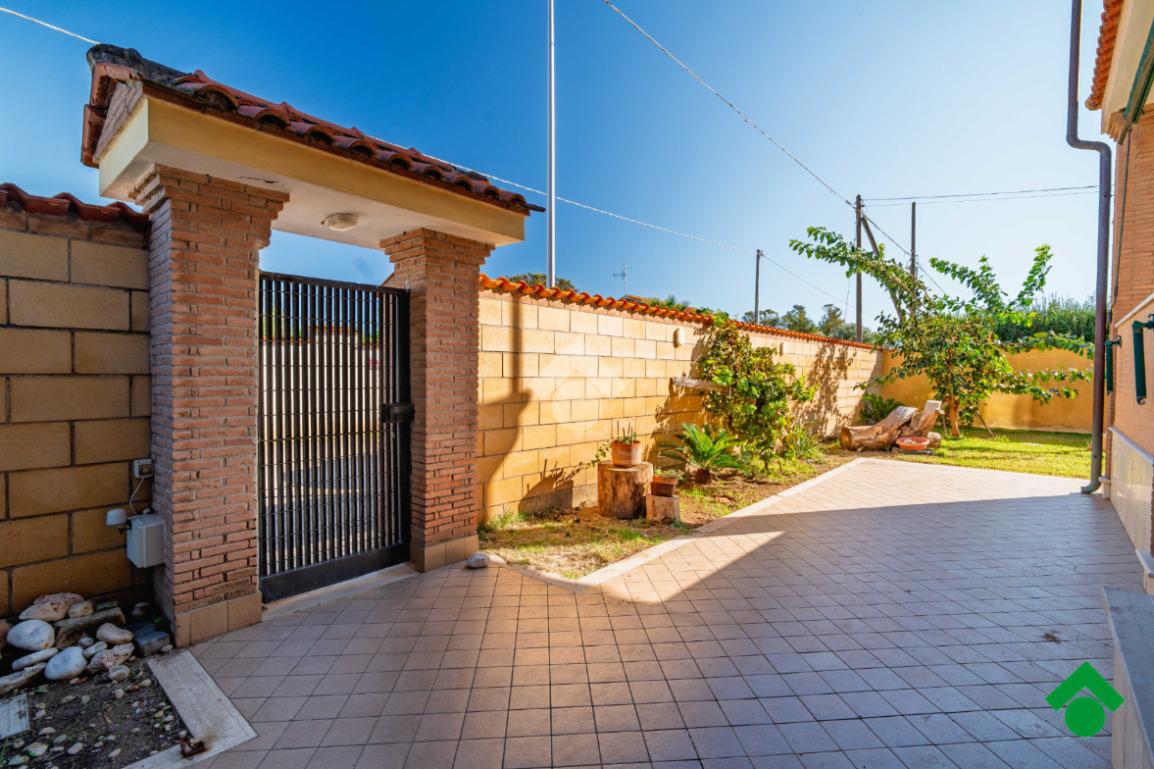 Entrando dal cancello di ingresso ci accoglie un'ampia tettoia ottima per passare le calde giornate estive in compagnia di amici e parenti. Proseguendo al piano inferiore, superato il balconcino rialzato entriamo direttamente nel soggiorno con porta finestra che si apre sul giardino laterale, una cucina separata con accesso a un balconcino retrostante, bagno finestrato con doccia, camera matrimoniale e una cameretta attrezzata a cabina armadio.