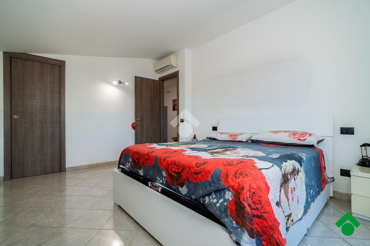Mentre il piano superiore, rifatto nel 2013, che si accede tramite una scala sul retro della villa ospita un ampio open space con angolo cottura dotato di balconcino chiuso su due lati, un piccolo bagno di servizio, due camerette, un secondo bagno con vasca e doccia, e una camera matrimoniale munita di cabina armadio e un balconcino comunicante con la cameretta adiacente. Questo piano è dotato di impianto di climatizzazione in tutte le stanze.